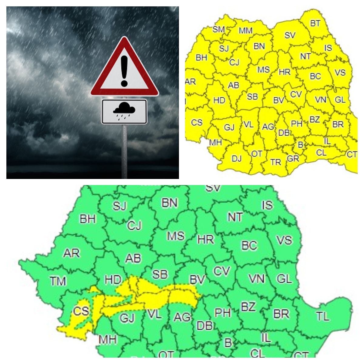 Administrația Națională de Meteorologie (ANM) a emis o alertă Cod galben de ploi puternice, valabilă de vineri ora 12.00 până sâmbătă la ora 8.00