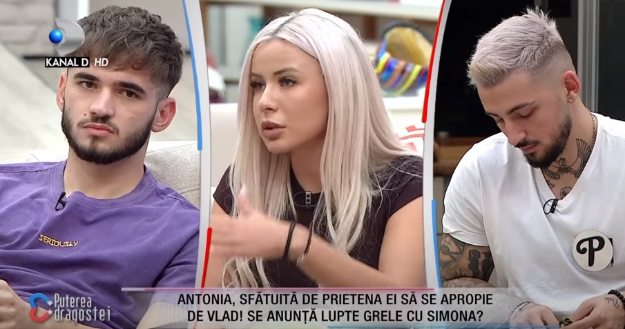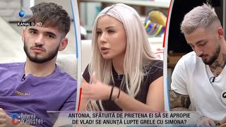 Antonia a fost sfătuită de prietena ei să se apropie de un alt concurent de emisiune, de Vlad. "Tocmai pe Vlad, care e acum cu Simona", a glumit Antonia.