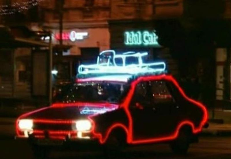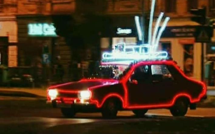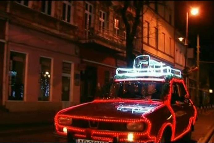 Impodobita ca bradul de Craciun, masina face senzatie pe strazile Aradului. Unde mai pui ca parca era vremea ca Mos Craciun sa intre-n randul lumii. Patru zile a durat ca masina sa fie transformata intr-o podoapa pe patru roti.