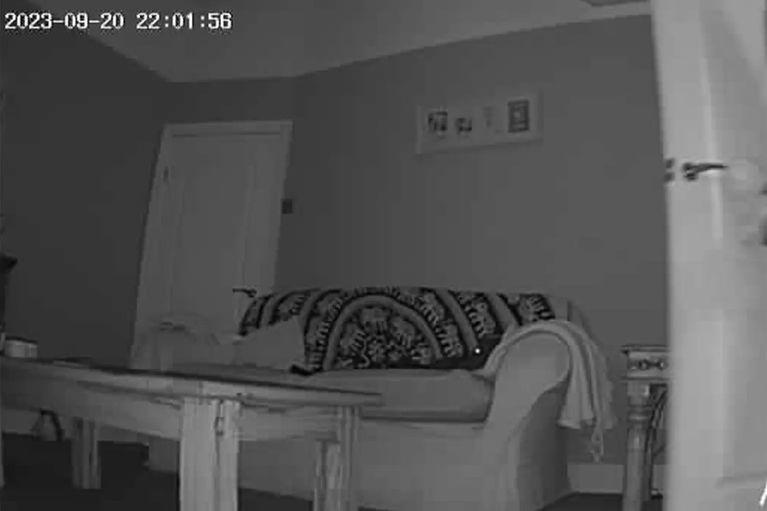 Femeia a decis să instaleze o cameră de supraveghere cu senzori de mișcare în sufragerie, pentru a se asigura că patrupedul este în siguranță în timpul nopții.