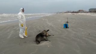 Doi porci mistreti morti au fost gasiti in aceasta dimineata pe o plaja din statiunea Mamaia.