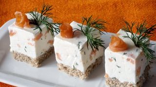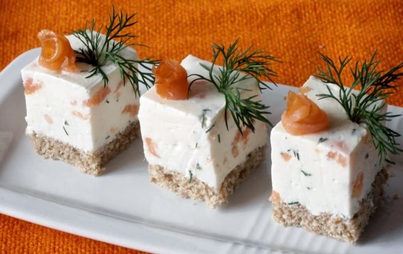Cuburi aperitiv cu crema de branza si somon
