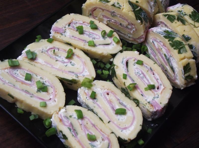 Rulada aperitiv cu crema de branza si sunca presata