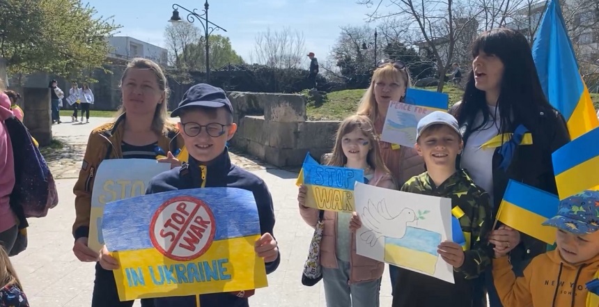 Aproximativ 200 de femei şi copii din Ucraina protestează, sâmbătă, la Constanţa, faţă de războiul din ţara lor.