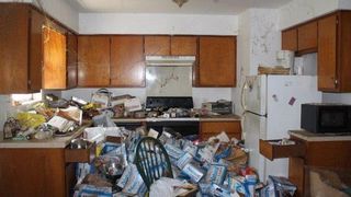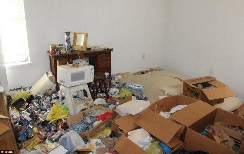 In casa este un adevarat dezastru. Peste tot se gasesc doze de bere goale, iar peretii sunt acoperiti cu panza de paianjeni.
