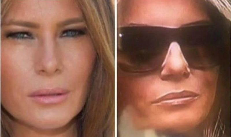 Ochelarii mari de soare ii acopera aproape jumatate din fata, iar nasul nu pare natural, spun internautii. Acestia au comparat mai multe fotografii cu sotia predesedintelui si au ajuns la concluzia ca nasul Melaniei este in realitate mult mai mic, decat cel al femeii care sta, in timpul acestui discurs langa DonaldTrump.