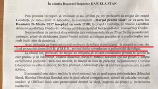 „Aveti obligatia ca impreuna cu toti profesorii de religie sa participati la aceasta actiune, dat find protocolul dintre B.O.R.si M.E.N, privind dubla subordonare a profesorului de religie. La randul lor, profesorii de religie au obligatia sa afiseze materialele primite in scolile in care predau si sa informeze cadrele didactice, elevii si parintii acestora (pe cat posibil), despre evenimentul prezentat.