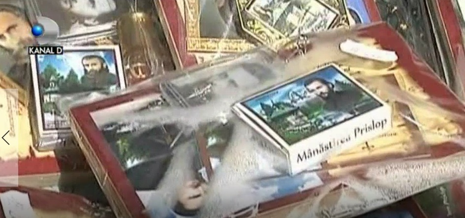 Comertul facut inclusiv din poarta manastirii e desfiintat de Biserica Ortodoxa Romana. Pentru ca nu a fost pus intre sfinti, nu pot icoane "oficiale" cu parintele Arsenie. Asta inseamna ca tot ce exista pe piata e facut de privati. Peste toti cei care au avut de castigat pana acum, calca aradeanul Emanuel Gheorghe. Pintr-o firma din Marea Britanie, a inregsistrat ca marca numele de Arsenie Boca si a pus monopol pe numele si chipul parintelui.