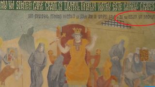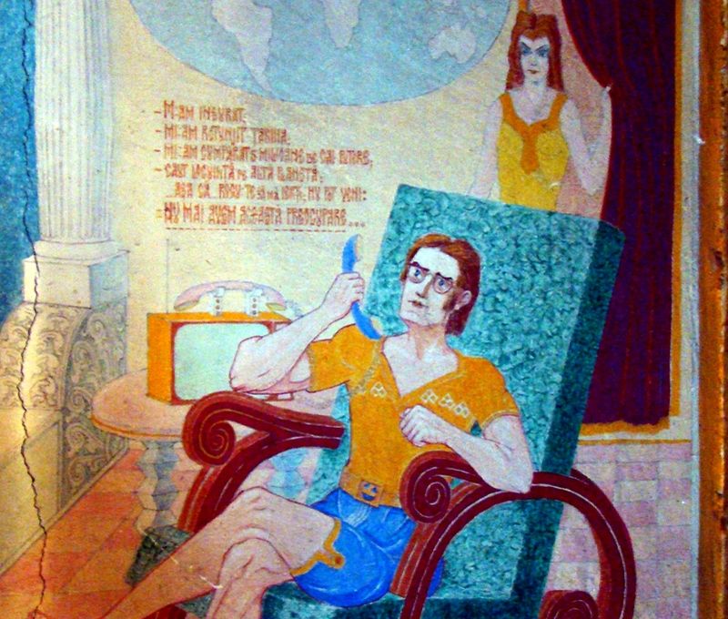 5 din 5 | Printre picturile sale de la biserica din Drăgănescu se numără cea care întruchipează omul modern, înconjurat de tehnologie avansată