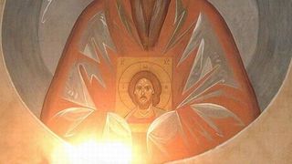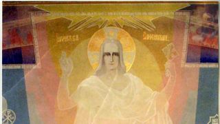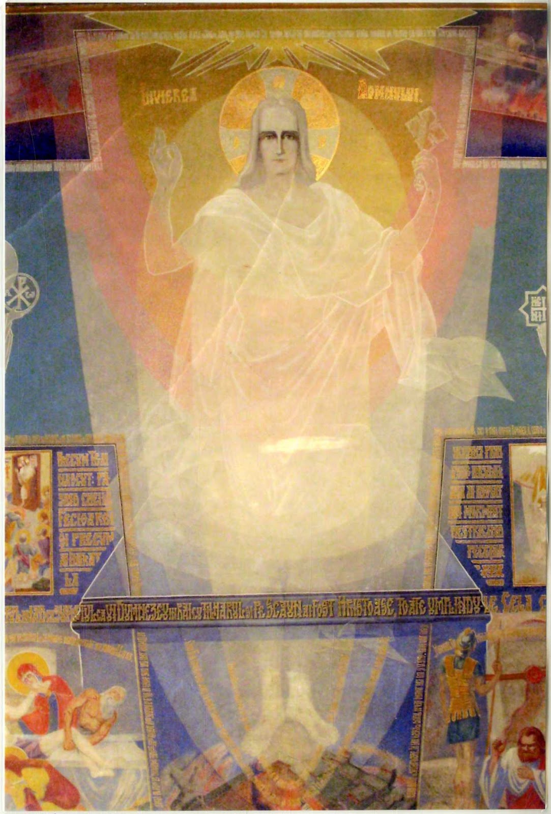Una dintre cele mai interesante picturi făcute de Arsenie Boca la Drăgănescu este ascunsă credincioșilor, fiind în absida altarului, pe partea dreaptă.