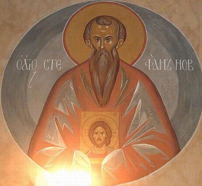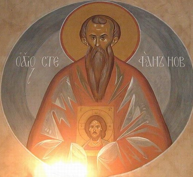 Deasupra scenei tiranisirei bisericii, Părintele Arsenie a scris: „Iar cuviosul primind mucenicia la 53 de ani ai vârstei sale în 28 ale idelor lui noemvrie, cu vina de pe urmă: "Ștefan mi-a făcut temnița mănăstire”.