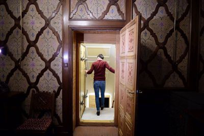 Imagini inedite din buncarul secret antiatomic construit pentru familia Ceusescu in subsolul Palatului Primaverii. Incaperea se afla la aproape 10 metri sub pamant, iar intrarea este mascata de o usa capitonata.