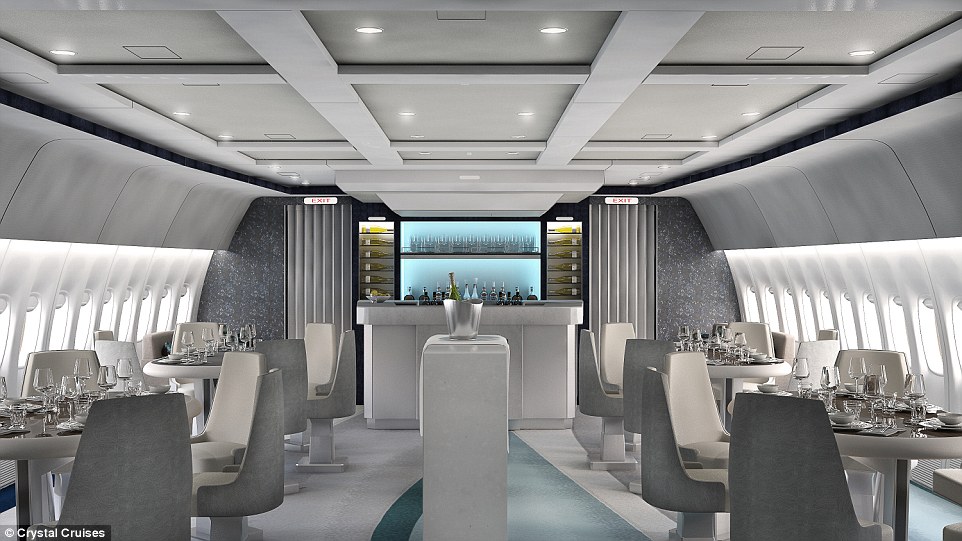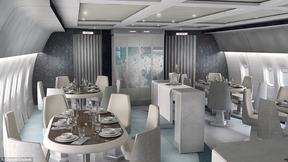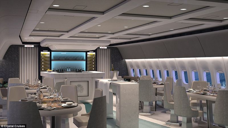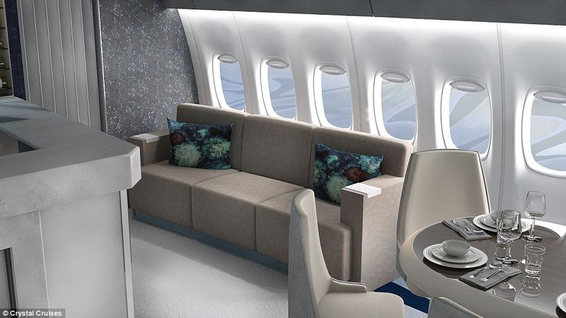 Realizat de compania americana Crystal, un bilet pentru o calatorie de 14 zile la bordul acestui avion incep de la 50.000 de dolari, relateaza Daily Mail.