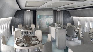 Interiorul celui mai scump avion a fost dezvaluit! La prima vedere pare un restaurant scump, cu scaune din piele, vesela fina si o zona mare de luat cina, insa asa arata cel mai luxos avion.