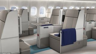 In avion, exista 84 de fotoloii unde pasagerii se pot relaxa care se transforma in paturi.