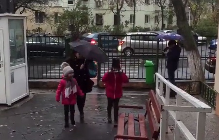 Tatal unui elev l-a filmat pe paznic si a postat imaginile pe Facebook, insotite de mesajul: „Iata cum un om simplu, insarcinat cu paza unei scoli din Bucuresti, intampina elevii in fiecare dimineata. A reusit sa insenineze ziua fiecarui elev, chiar daca afara ploua marunt. A reusit sa-mi insenineze si mie dimineata cu atitudinea lui. Bravo!”