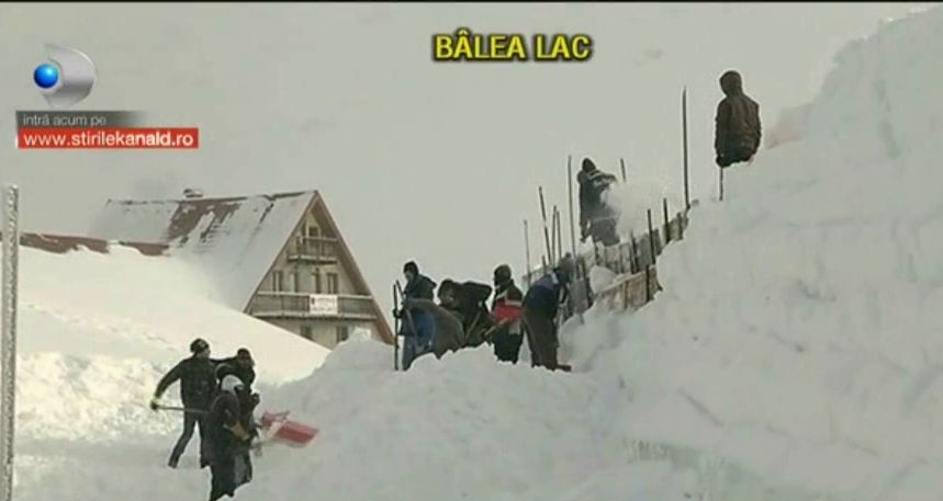 25 de muncitori muncesc de zor la hotelul de gheata de la Balea Lac. Vremea este numai buna iar materie prima au din belsug.