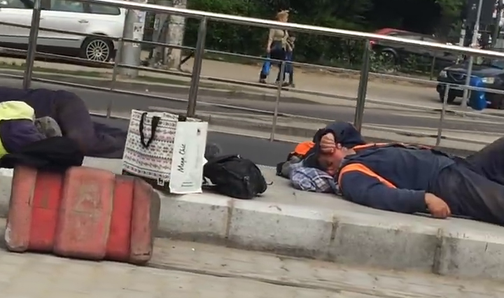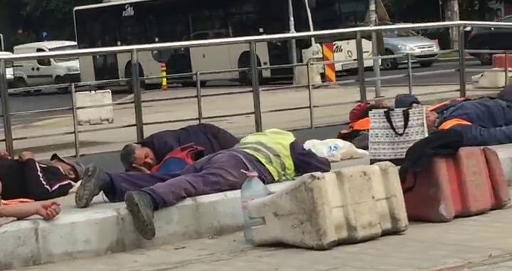 1 din 3 | Asa se munceste in Romania! Imagini revoltatoare surprinse in Bucuresti! Muncitorii dorm in plina zi, fara sa le pese de lucrari!