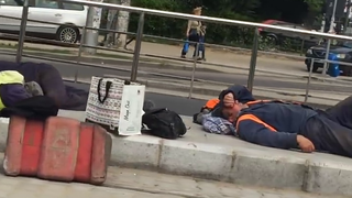 2 din 3 | Asa se munceste in Romania! Imagini revoltatoare surprinse in Bucuresti! Muncitorii dorm in plina zi, fara sa le pese de lucrari!