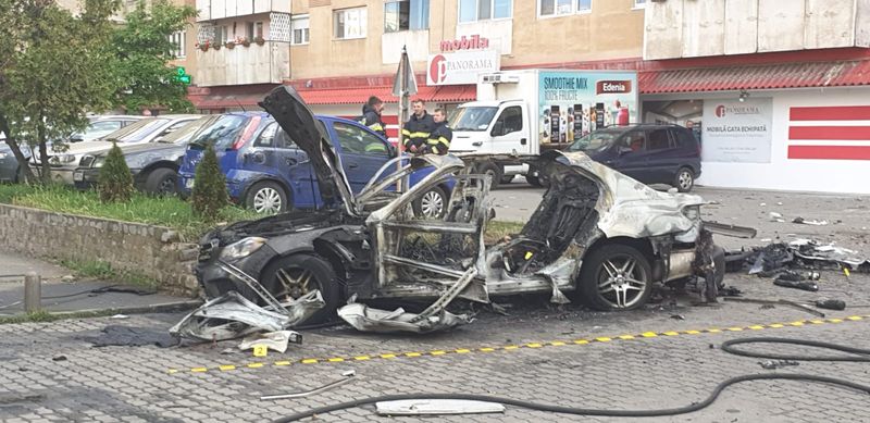 Un om de afaceri cunoscut din România a ars de viu în propria mașină, după ce aceasta a explodat sâmbătă dimineața în fața unui supermarket din Arad.