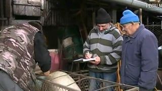Nea' Ioan explica formula matematica: lungimea porcului ori greutatea inmultite cu o constanta de calcul. Si ca sa il convinga pe cumparator ca e corect, agricultorul urca godacul si pe cantar.