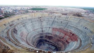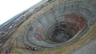 1 din 4 | Asta este cea mai valoroasa gaura din lume. Mina de diamante din Rusia este evaluata la 13 miliarde de lire sterline. Motivul pentru care zborul elicopterelor in zona este interzis