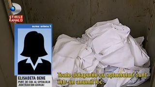 ELISABETA BENE: Toate dulapurile cu asternuturi sunt intr-un anumit loc. Ambulatoriu de specialitate, unde v-ati dus are probabil un wc, dar acela este si pentru apartinatorii care vin. Acela nu trebuie dezinfectat si curatat? Este dezinfectat tot timpul. Serviciul de ecarisaj care este in afara orasului este anuntat periodic. Noi avem dovezi in acest sens.