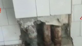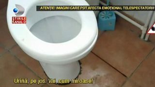 -Ia, uite cum arata wc-ul! Sticle! Mama, cum miroase.. Doamne! N-are bec! Nu au lumina. Nici aici, neon, nu exista! Uite, cum se scurge! Uite, mizerie! Ia, uite, targa! Cum arata targa aceasta!