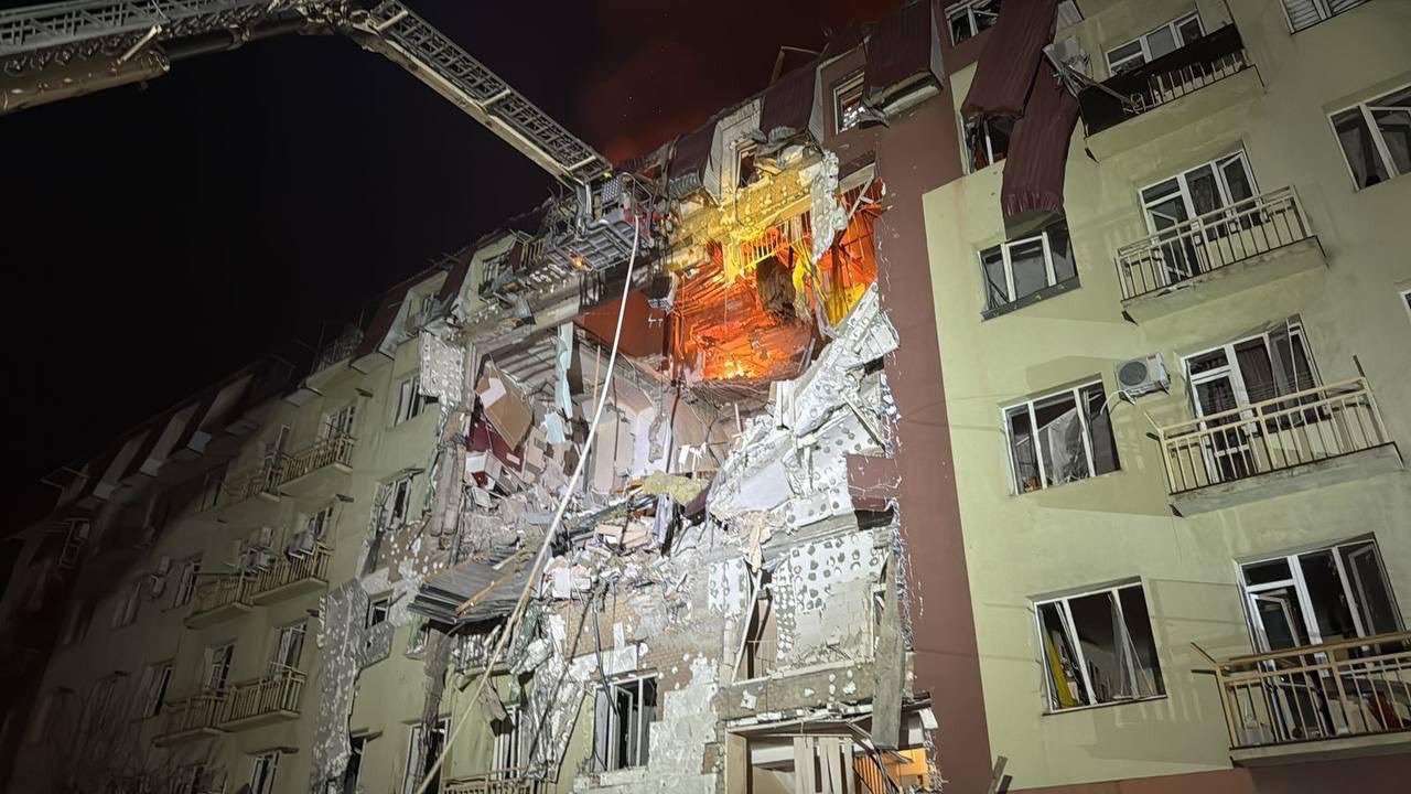 An apartment building was damaged from the fifth to the third floor. Private homes were also affected.