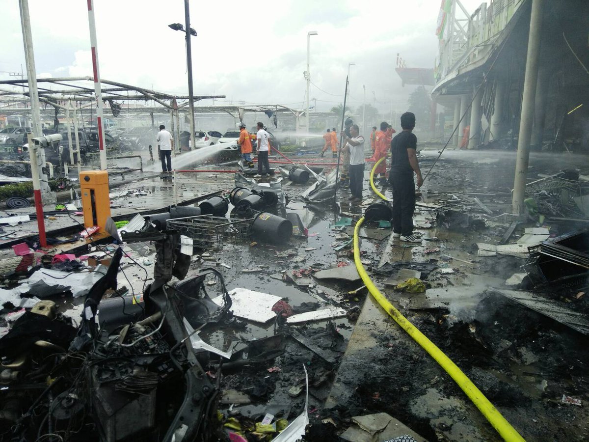 จนท.เข้าระงับเพลิงไว้แล้ว พร้อมปิดกั้นพื้นที่ กันผู้ไม่เกี่ยวข้องออกจากพื้นที่ พบว่าบริเวณทางเข้าด้านหน้าห้างเสียหายอย่างหนัก