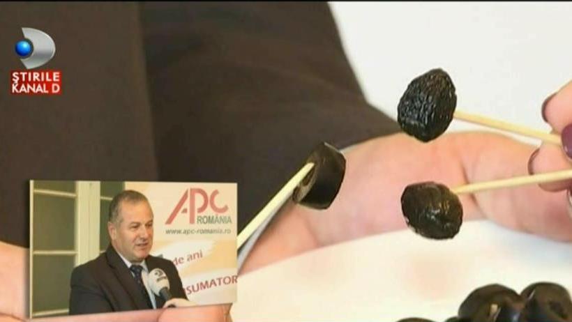 „Maslinele negre, din pacate, sunt colorate artificial cu ajutorul a doi stabilizatori de culoare- gluconatul feros si lactatul feros”, explica presedintele Asociatiei Pro Consumator, Costel Stanciu.