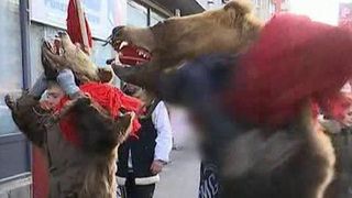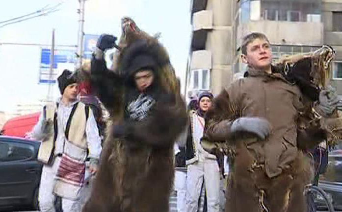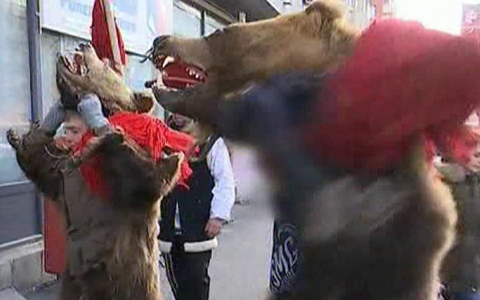 Bucurestenii de pe Calea Mosilor au crezut ca se cutremura pamantul cand au auzit harmalaia de pe strazi. De fapt, era o ceata de colindatori venita de pe plaiuri moldovenesti special ca sa vesteasca sarbatorile. Pe sunetul asurzitor de tobe, ursii, tineri si... iuti de picior, s-au tavalit pe jos spre incantarea trecatorilor.