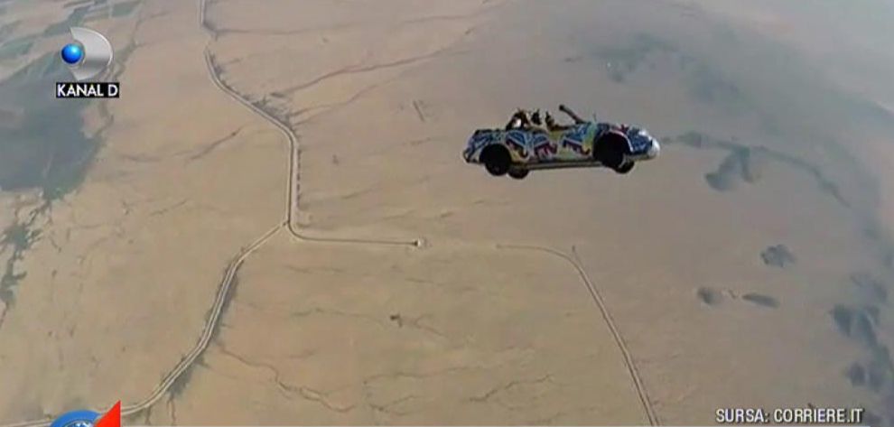 Au dat dovada de un curaj nebun! Cinci barbati din Statele Unite au pus la cale o cascadorie pe care nici in filme nu ati vazut-o: au sarit cu masina din avion!