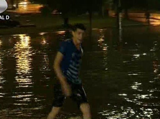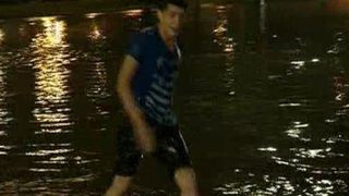2 din 2 | Au facut facut haz de inundatii. Cativa tineri din Craiova s-au balacit ca la Mamaia in apa revarsata in oras
