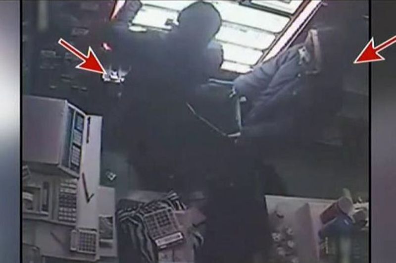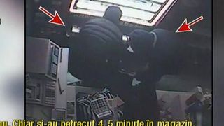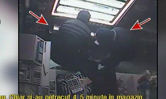 Pe imaginile surprinse de camere se observa cum indivizii intra in magazin si trec imediat la fapte. Cei doi merg in spatele tejghelei si incep sa scotoceasca.