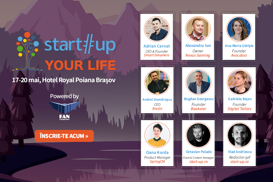 Patru zile de workshop-uri practice despre cum sa-ti deschizi o afacere, cum sa identifici piata si cum sa construiesti un model de business – aceasta este propunerea organizatorilor pentru cea de-a treia editie a taberei de antreprenoriat si leadership „Startup Your Life”, care va avea loc in perioada 17-20 mai 2018, la Hotel Royal, Poiana Brasov.