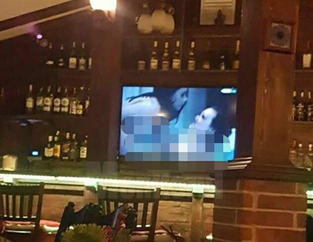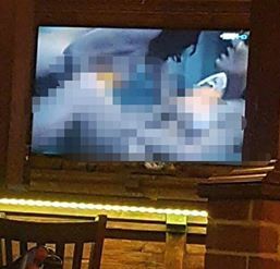 Clientii au putut observa, la unul dint televizoarele din local, un film pentru adulti necenzurat. La acea ora, in restaurant se aflau si copii.