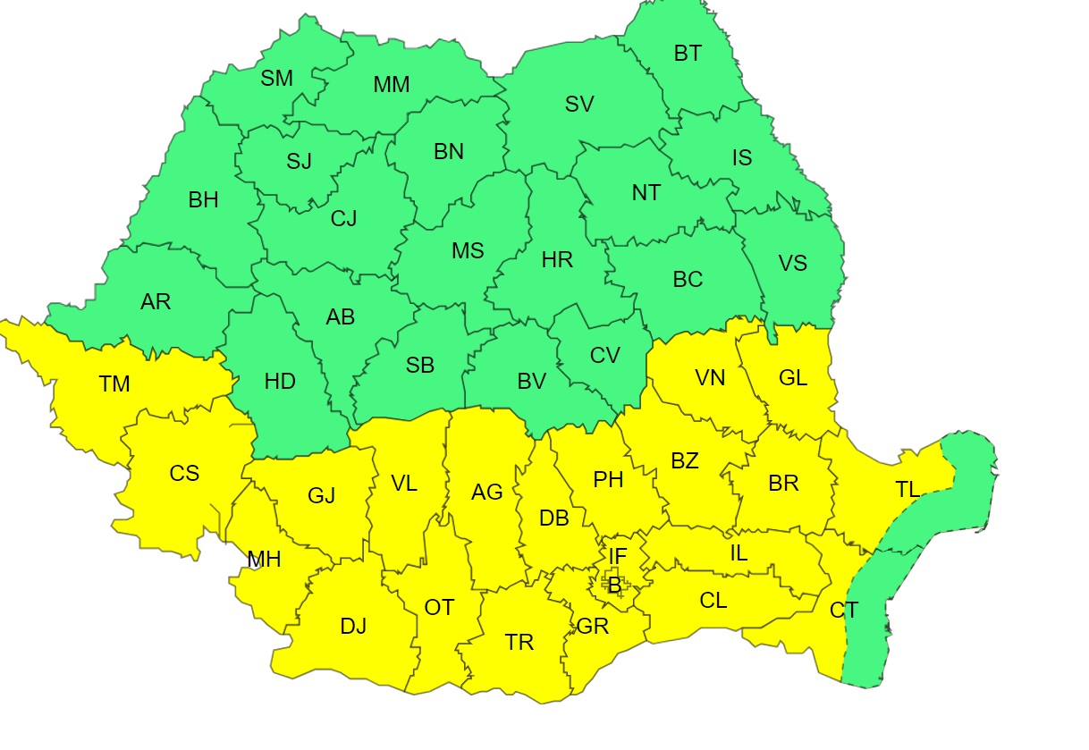 În același timp, tot pentru data de 2 august, meteorologii au emis și o avertizare de tip cod galben, tot pentru temperaturi ridicate.