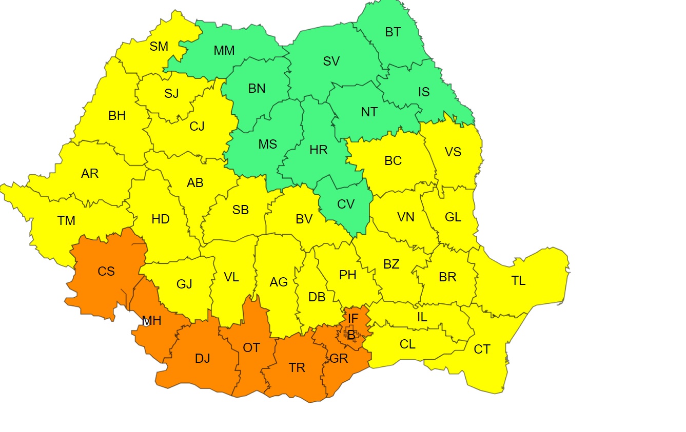 7 județe și Capitala, sub cod portocaliu de caniculă