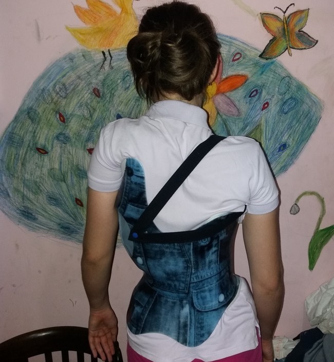 “Coloana vertebrala a Aurelianei-Maria s-a indreptat 11° unghi Cobb in zona toracala. Pentru ca in zona lombara coloana s-a strambat 4° unghi Cobb, i s-a realizat in Germania, la clinica din Gensingen a doctorului Weiß, al doilea corset tip Cheneau, pe care-l poarta zilnic 22 de ore.