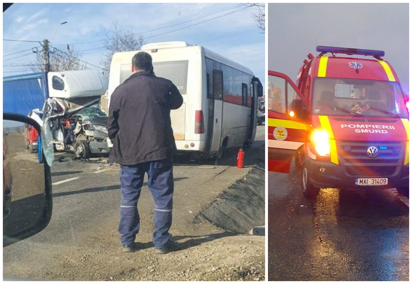 "În urma accidentului au rezultat două victime conştiente, o victimă din autobuz cu atac de panică, aceasta a refuzat transportul la spital şi şoferul autoutilitarei care a fost transportat la unitatea medicală de