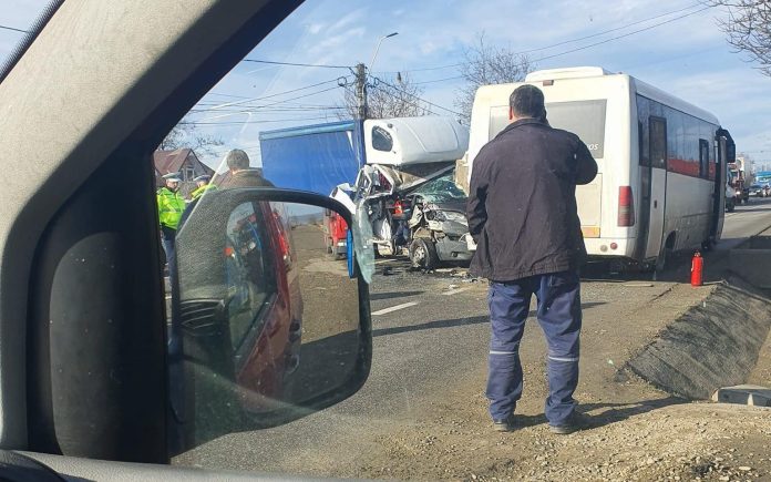 Un autobuz oprit în stație a fost implicat miercuri într-un accident grav în localitatea Dumbrava din județul Bacău.