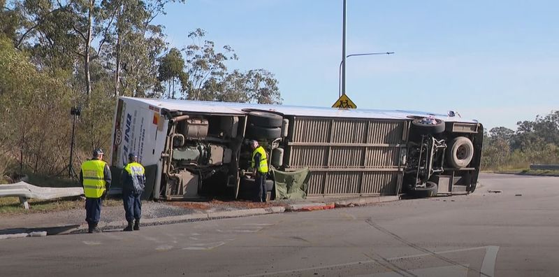 Autocarul s-a răsturnat cu nuntașii care se întorceau de la petrecere care a avut loc în regiunea viticolă Hunter Valley din New South Wales.
