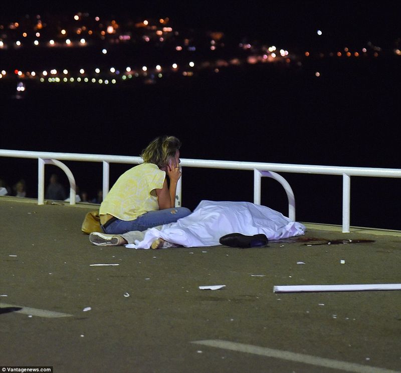 Oamenii sfasiati de durere au refuzat sa se desparta de persoanele dragi care si-au pierdut viata in tragicul atac si au stat langa cadavrele intinse pe faimoasa promenada Anglais din Nisa.