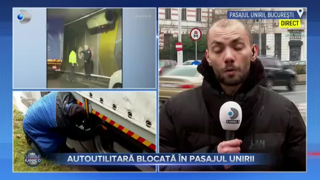 Stirea "Autoutilitară blocată în Pasajul Unirii" difuzata in cadrul Stirilor KANAL D din 12 01 2023