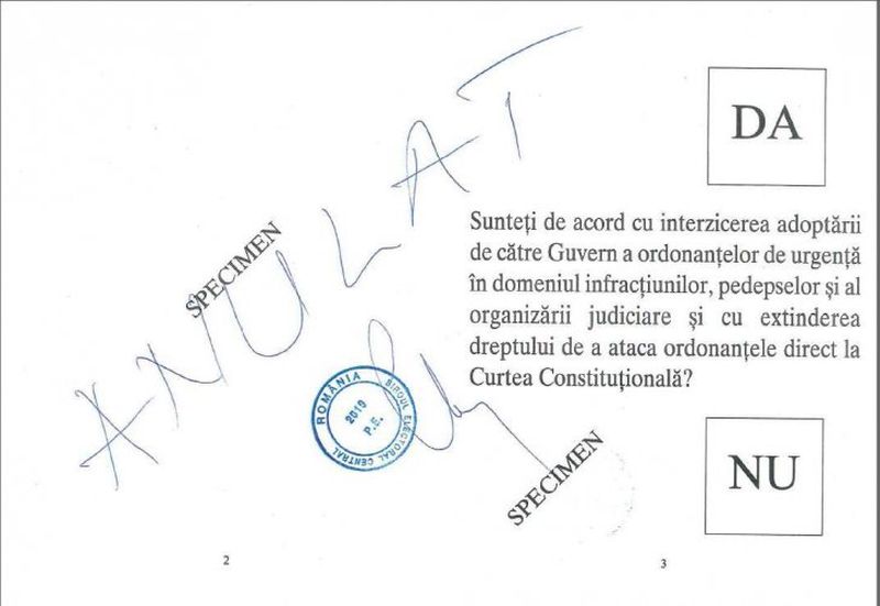 La Referendumul pentru Justiție sunt două buletine de vot, fiecare conținând câte o întrebare și două căsuțe: una cu DA și alta cu NU. Trebuie să puneți ștampila într-una din aceste căsuțe, în funcție de opțiunea dumneavoastră.