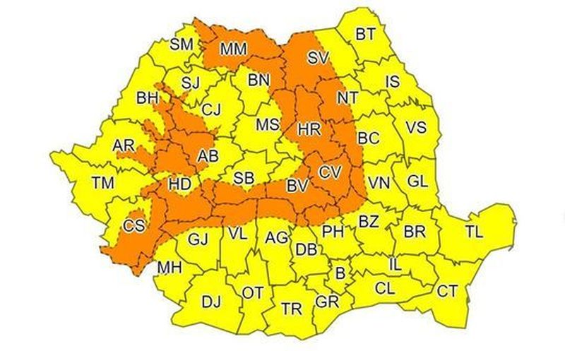 In acelasi interval va fi in vigoare o averizarea cod portocaliu pentru toate zonele montane, unde va ninge viscolit si se va depune un strat consistent de zapada. Vantul va sufla in rafale care vor depasi 80-90 de kilometri la ora, iar pe creste va atinge 100-120 de kilometri la ora.