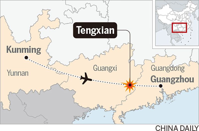 Zborul cu numărul MU5735 s-a prăbuşit lângă Wuzhou, în provincia din sudul Chinei Guangxi. Aparatul era în drum de la Kunming, în provincia Yunnan, spre Guangzhou în provincia Guangdong.
