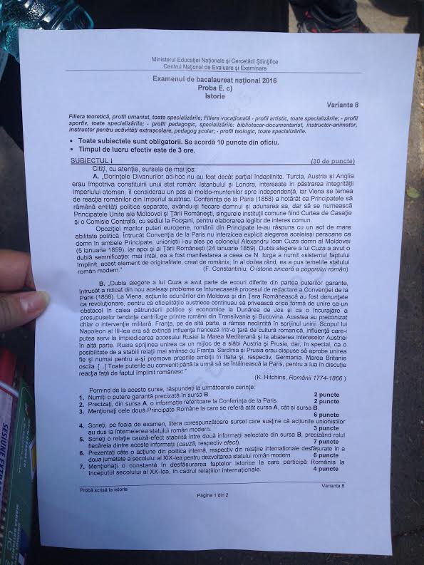 Update: Iata care au fost subiectele la matematica si cele la istorie.