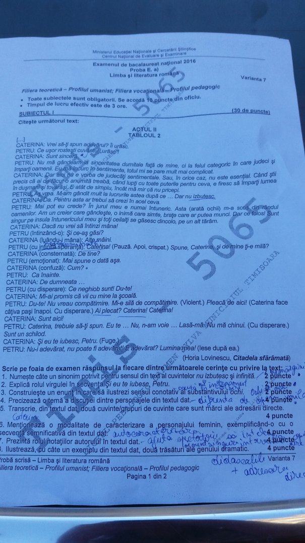 4 din 6 | BAC 2016. Emotii mari 137.000 de candidati. Subiectele la limba si literatura romana
